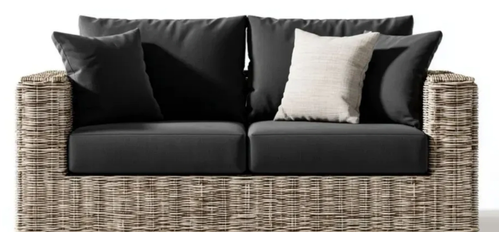 Questo divano a due posti da esterno combina comfort e stile con un design moderno perfetto per qualsiasi terrazza o giardino.